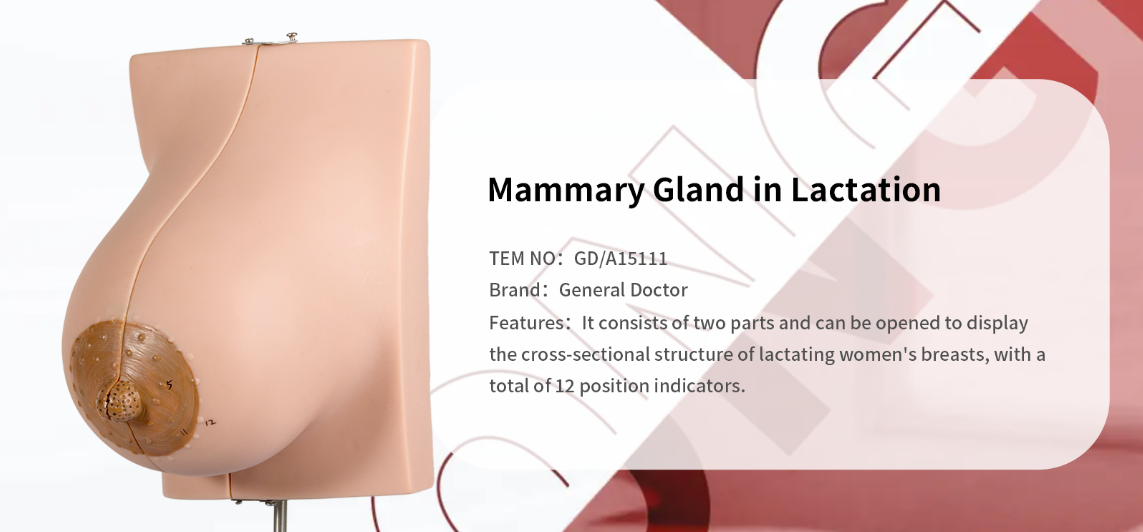The GD Mammary Gland in Lactation Model provides a clear and anatomically accurate teaching solution for studying breast anatomy and lactation physiology, supporting both foundational education and specialized maternal health training.